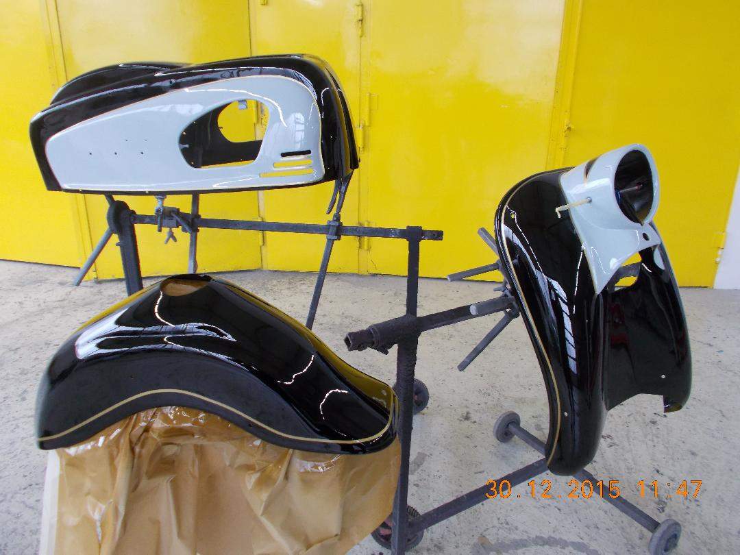 Progressroller: Teile entrostet, Dellen beseitig, 2 farbig lackiert + Goldstreifen